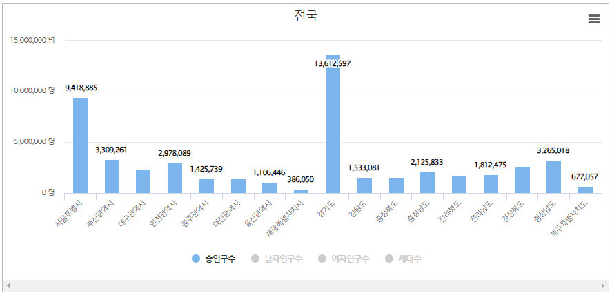 대한민국 시도별 인구 그래프