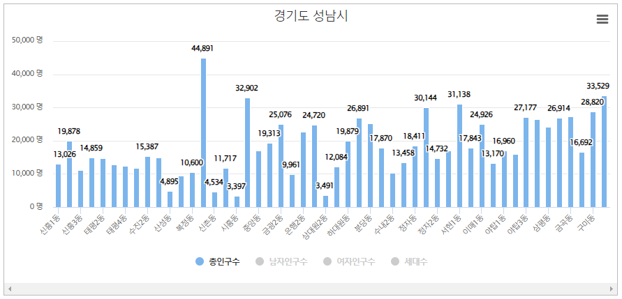 | 분당구 정자1동 | 30,144 | 13,978 |
