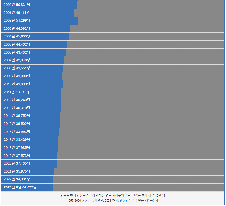 정선군 인구 그래프