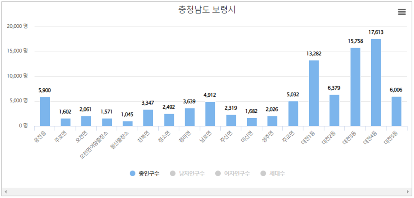 | 대천4동 | 17,613 | 8,220 |