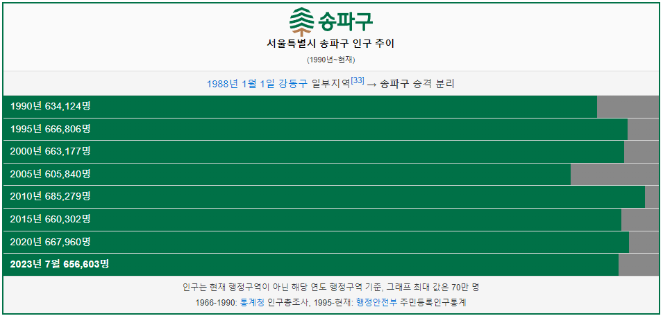서울시 송파구 인구(인구수) 그래프