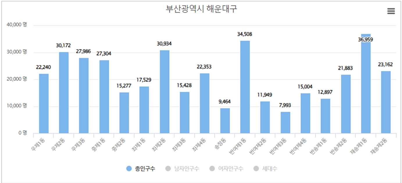 부산시 해운대구 동면읍 인구(인구수)