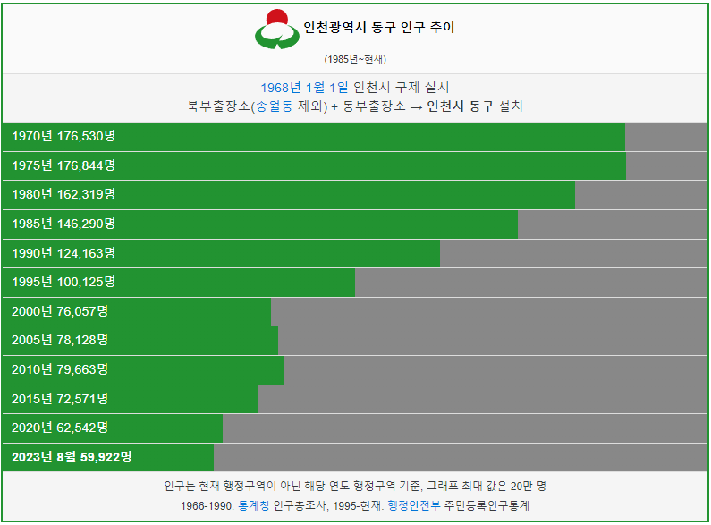 인천시 동구 인구(인구수) 추이