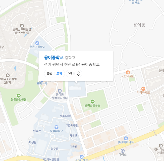 평택시(고덕)에서 특목고에 가장 많이 진학한 학교는 용이중학교로 경기도 평택시 현신로 64번지에 위치합니다. 용이중학교의 학생수는 291명이며 과학고는 0명, 외고는 1명, 자사고에는 3명이 진학했습니다. 용이중학교의 전체 학생 중 1.37%인 4명이 특목고에 진학했습니다.