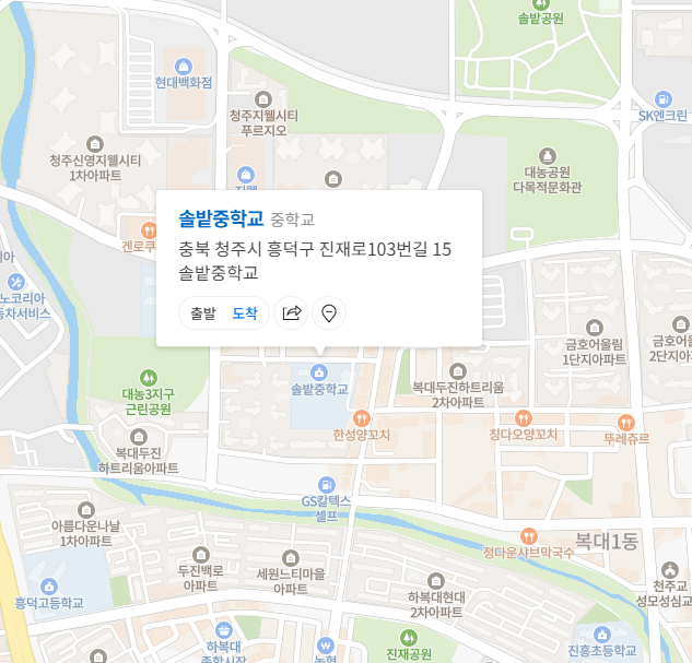 청주시에서 세 번째로 특목고에 많이 진학한 학교는 솔밭중학교로 청주시 흥덕구 진재로103번길 15번지에 위치합니다. 솔밭중학교의 학생수는 303명이며 과학고는 3명, 외고는 9명, 자사고에는 0명이 진학했습니다. 솔밭중학교의 전체 학생 중 3.96%인 12명이 특목고에 진학했습니다.