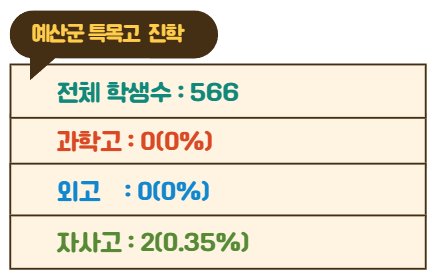 *예산군의 경우 예산여자중학교 외에 특목고에 진학한 중학교가 없습니다.