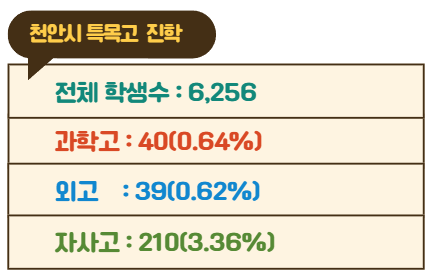 천안시 중학교 특목고 진학 순위
