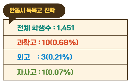안동시 특목고 진학 상위 3개 중학교
