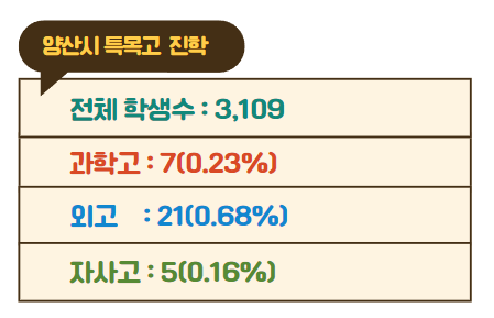양산시 중학교 특목고 진학 순위