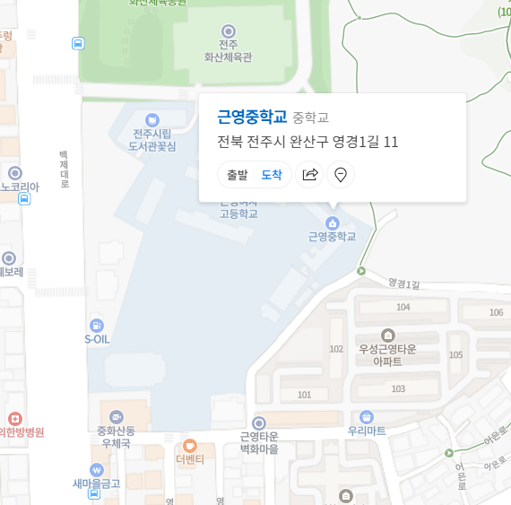 전주시에서 세 번째로 특목고에 많이 진학한 학교는 전주근영중학교로 전주시 완산구 영경1길 11번지에 위치합니다. 전주근영중학교의 학생수는 197명이며 과학고는 2명, 외고는 0명, 자사고에는 5명이 진학했습니다. 전주근영중학교의 전체 학생 중 3.55%인 7명이 특목고에 진학했습니다.