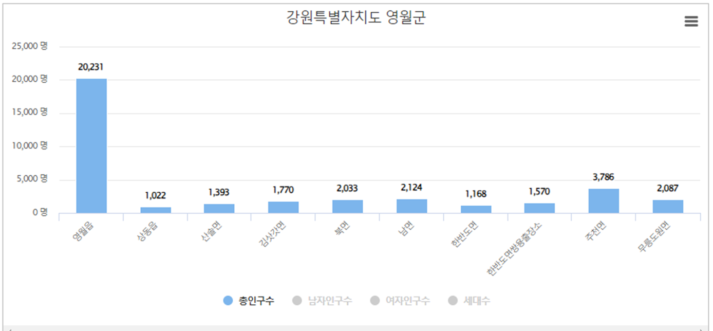 | 영월읍 | 20,231 | 10,776 |