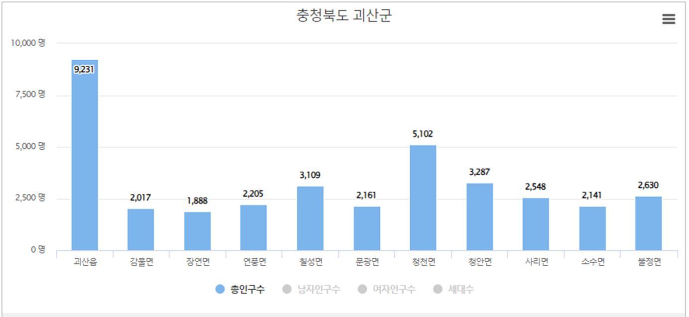 | 괴산읍 | 9,231 | 4,940 |