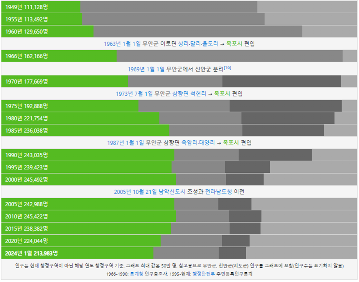 목포시 인구 그래프