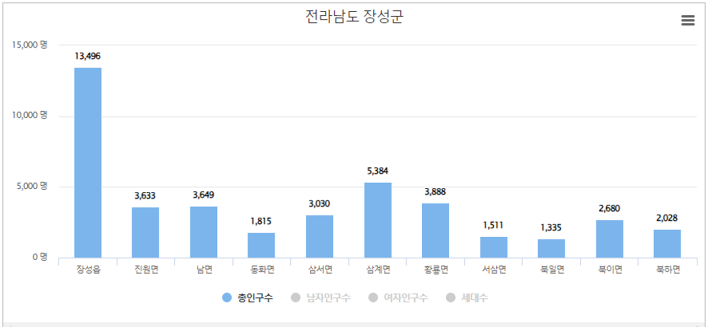장성군 인구는 1966년 12만명 이었습니다. 그리고 1980년 인구가 처음으로 10만명 이하로 감소했고 이후 인구가 계속해서 감소했습니다. 2024년 현재 4만명이 장성군에 거주하고 있습니다.