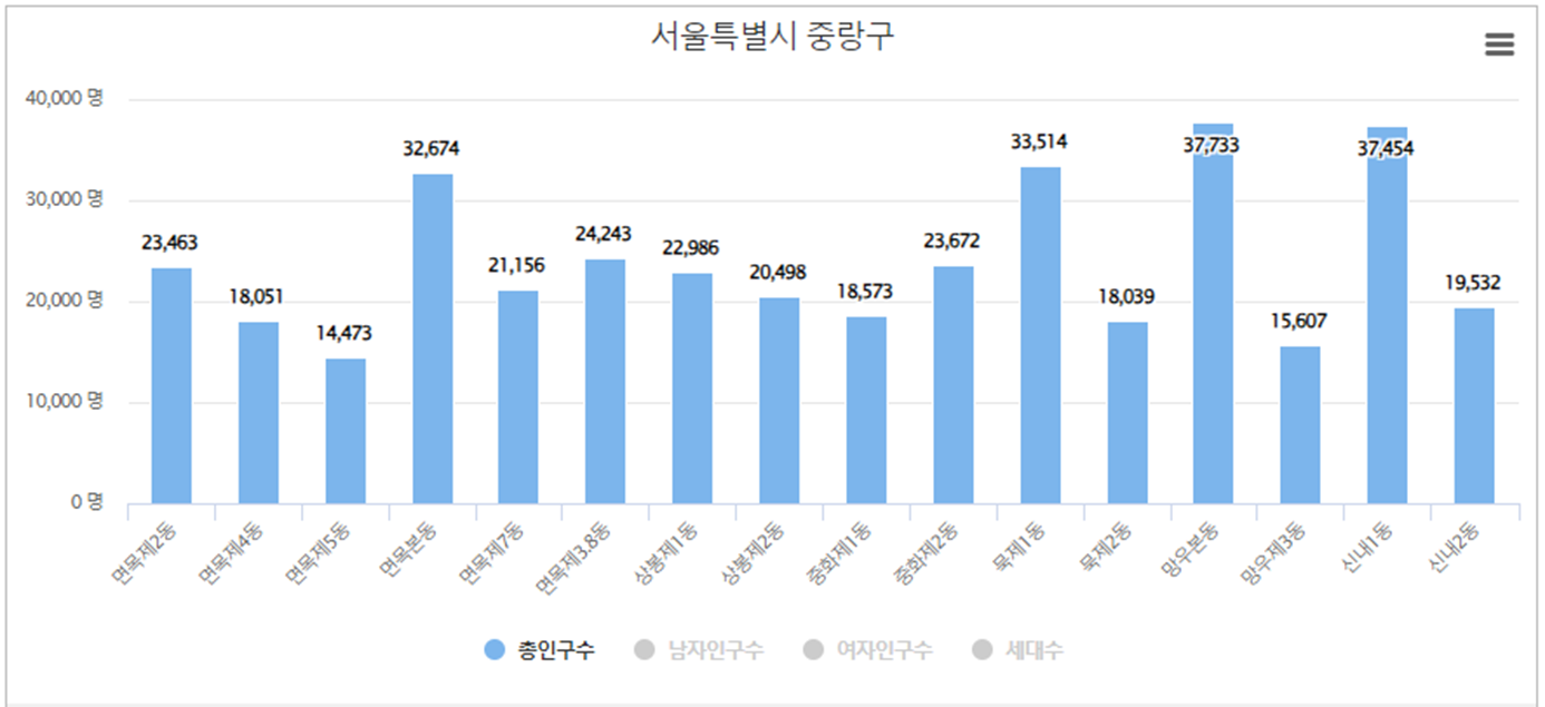서울시 중랑구 동면읍 인구(인구수)