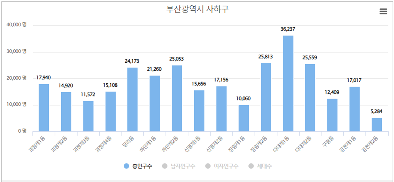 부산시 사하구 동면읍 인구(인구수)