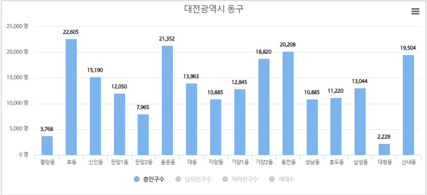 대전시 동구 인구(인구수)