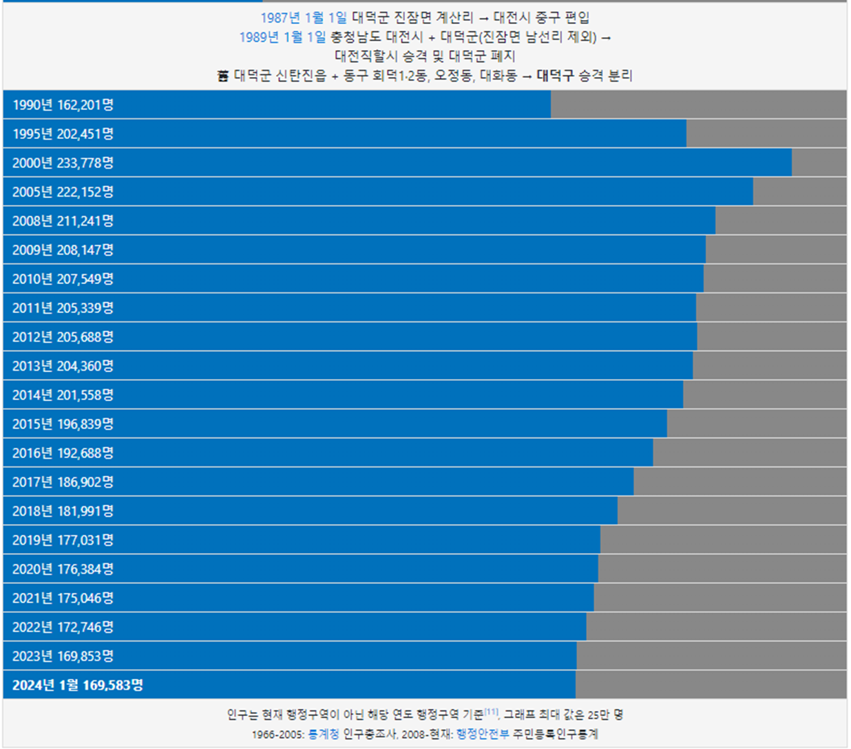 대전시 대덕구 인구(인구수) 추이