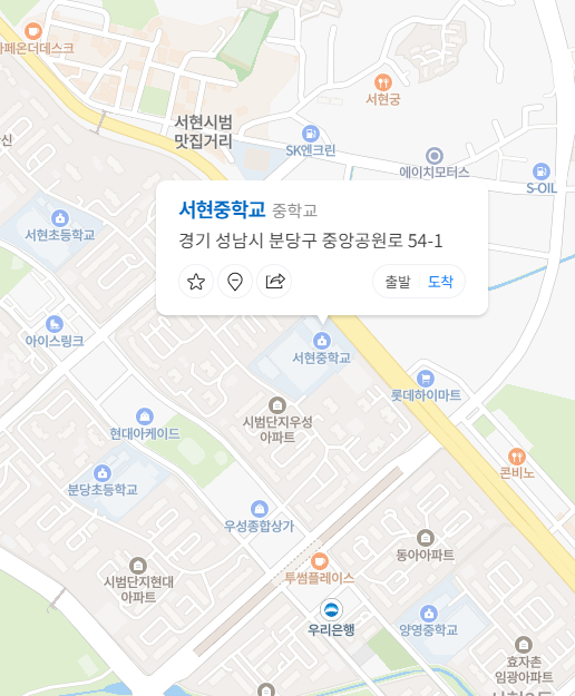 성남시에서 두 번째로 특목고에 많이 진학한 학교는 서현중학교로 경기도 성남시 분당구 중앙공원로 54-1번지에 위치합니다. 서현중학교의 학생수는 431명이며 과학고는 1명, 외고는 13명, 자사고에는 9명이 진학했습니다. 서현중학교의 전체 학생 중 5.34%인 23명이 특목고에 진학했습니다.