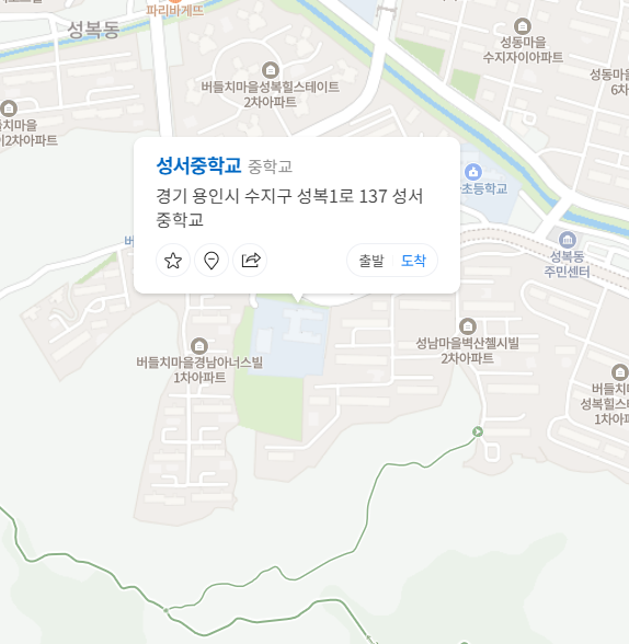 용인시에서 세 번째로 특목고에 많이 진학한 학교는 성서중학교로 경기도 용인시 수지구 성복1로 137번지에 위치합니다. 성서중학교의 학생수는 319명이며 과학고는 1명, 외고는 15명, 자사고에는 8명이 진학했습니다. 성서중학교의 전체 학생수 대비 7.52%인 24명이 특목고에 진학했습니다.