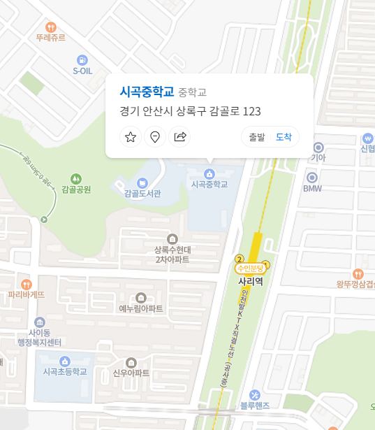 안산시에서 두 번째로 특목고에 많이 진학한 학교는 시곡중학교로 경기도 안산시 상록구 감골로 123번지에 위치합니다. 시곡중학교의 학생수는 312명이며 과학고는 1명, 외고는 6명, 자사고에는 19명이 진학했습니다. 시곡중학교의 전체 학생중 8.33%인 26명이 특목고에 진학했습니다.