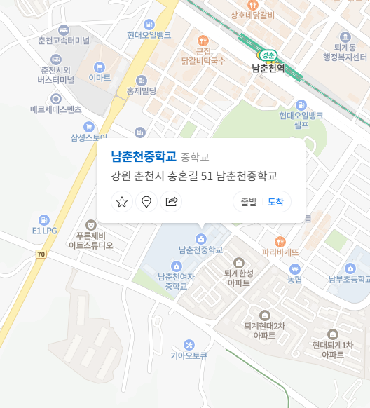 춘천시에서 두 번째로 특목고에 많이 진학한 학교는 남춘천중학교로 강원도 춘천시 충혼길 51번지에 위치합니다. 남춘천중학교의 학생수는 339명이며 과학고는 7명, 외고는 4명, 자사고에는 2명이 진학했습니다. 남춘천중학교의 전체 학생중 3.83%인 13명이 특목고에 진학했습니다.