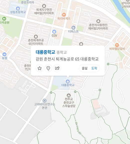 춘천시에서 특목고에 가장 많이 진학한 학교는 대룡중학교로 강원도 춘천시 퇴계농공로 65번지에 위치합니다. 대룡중학교의 학생수는 316명이며 과학고는 2명, 외고는 11명, 자사고에는 1명이 진학했습니다. 대룡중학교의 전체 학생 중 4.43%인 14명이 특목고에 진학했습니다.