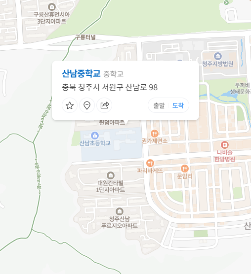 청주시에서 두 번째로 특목고에 많이 진학한 학교는 산남중학교로 청주시 서원구 산남로 98번지에 위치합니다. 산남중학교의 학생수는 236명이며 과학고는 3명, 외고는 11명, 자사고에는 0명이 진학했습니다. 산남중학교의 전체 학생중 5.93%인 14명이 특목고에 진학했습니다.