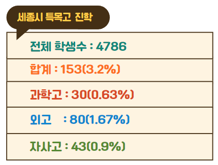 세종시(세종특별자치시) 중학교 특목고 진학 순위