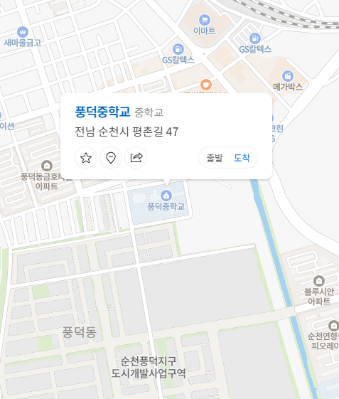 순천시에서 세 번째로 특목고에 많이 진학한 학교는 순천풍덕중학교로 순천시 평촌길 47번지에 위치합니다. 순천풍덕중학교의 학생수는 156명이며 과학고는 4명, 외고는 0명, 자사고에는 1명이 진학했습니다. 순천풍덕중학교의 전체 학생 중 3.21%인 5명이 특목고에 진학했습니다.