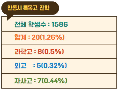 안동시 중학교 특목고 진학 순위
