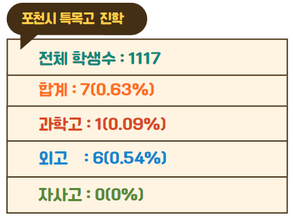 포천시 중학교 순위, 특목고(외고, 과학고, 자사고, 학군) 진학 - 2023년