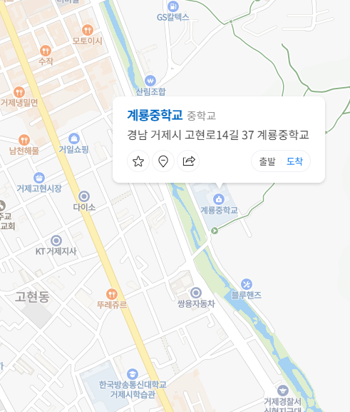 거제시에서 두 번째로 특목고에 많이 진학한 학교는 계룡중학교로 거제시 고현로14길 37번지에 위치합니다. 계룡중학교의 학생수는 356명이며 과학고는 3명, 외고는 4명, 자사고에는 1명이 진학했습니다. 계룡중학교의 전체 학생중 2.25%인 8명이 특목고에 진학했습니다.