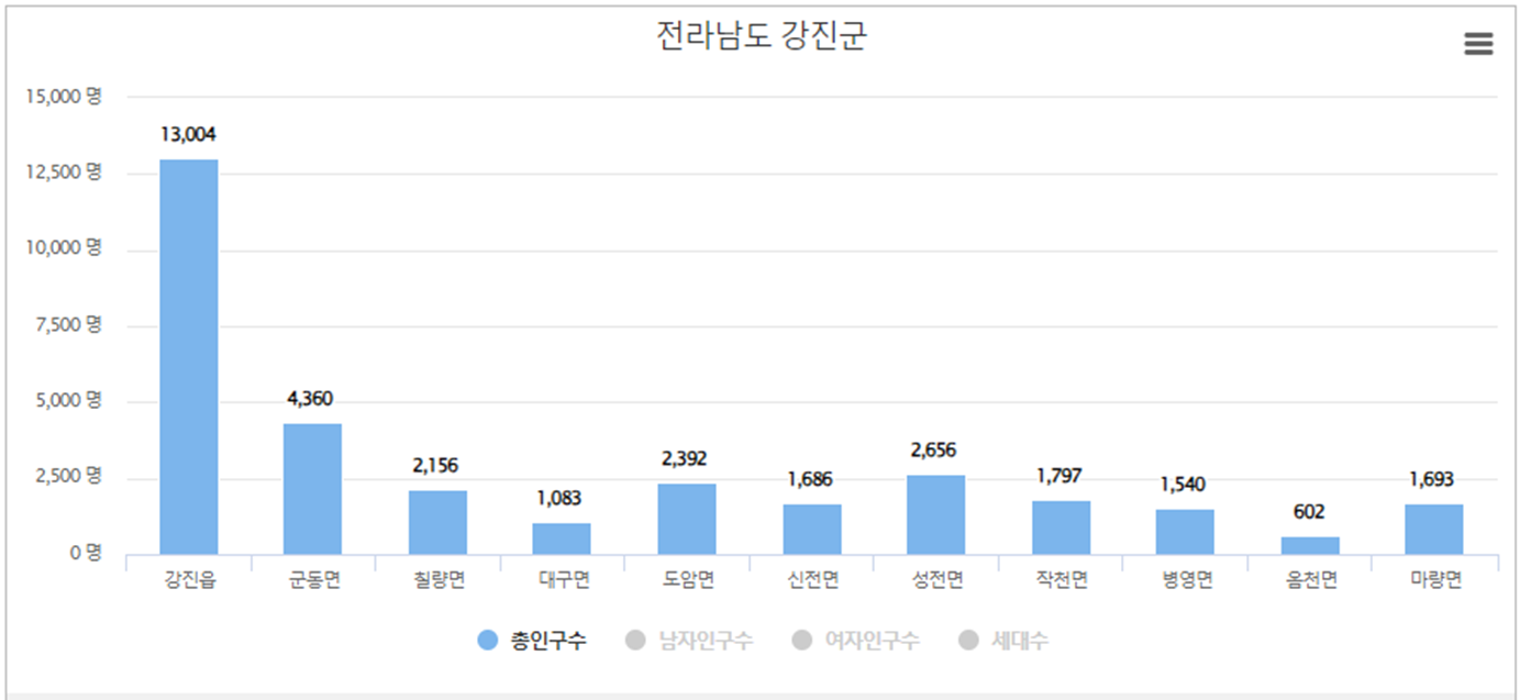 | 강진군 | 32,969 | 18,555 |