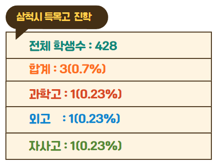 삼척시 중학교 순위, 특목고(외고, 과학고, 자사고, 학군) 진학 - 2023년